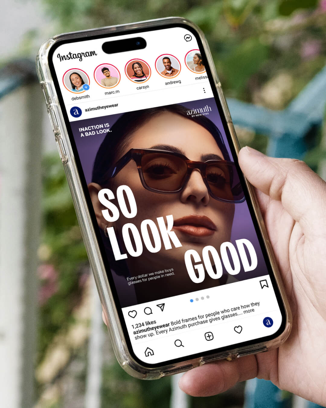 Yes, people want to help, but when it comes to eyewear, looking good will always come first. This campaign embraces that truth. With Azimuth, you can look good and do good at the same time, because making a statement is exactly how you make a difference.